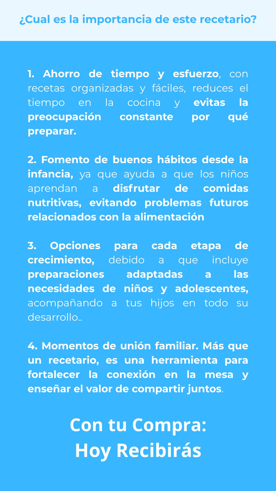 Recetario Familiar Saludable: Para niños de 1 a 15 años.